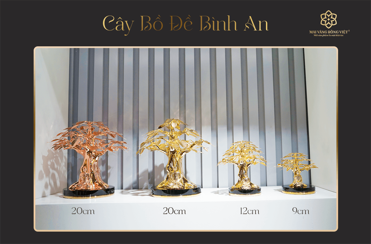 Các kích thước cây Bồ Đề Bình An mạ vàng 24K