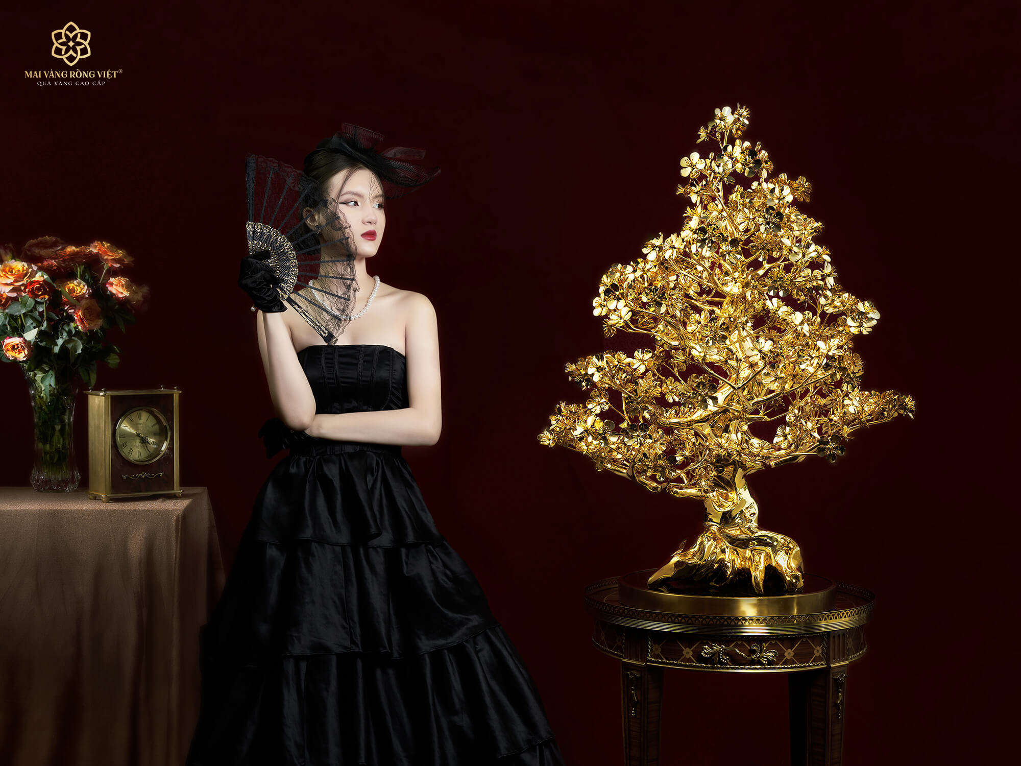 Cây Mai Đại Phúc khoác lên mình vẻ ngoài lấp lánh cao sang, phú quý mà vẫn lưu giữ được cốt cách hiên ngang tựa như một người quân tử. Mỗi bông mai mạ vàng tượng trưng cho một niềm hạnh phúc, một may mắn. Hàng ngàn, hàng vạn bông mai là những thành công và tài lộc bất tận đang đón chờ gia chủ ở phía trước.