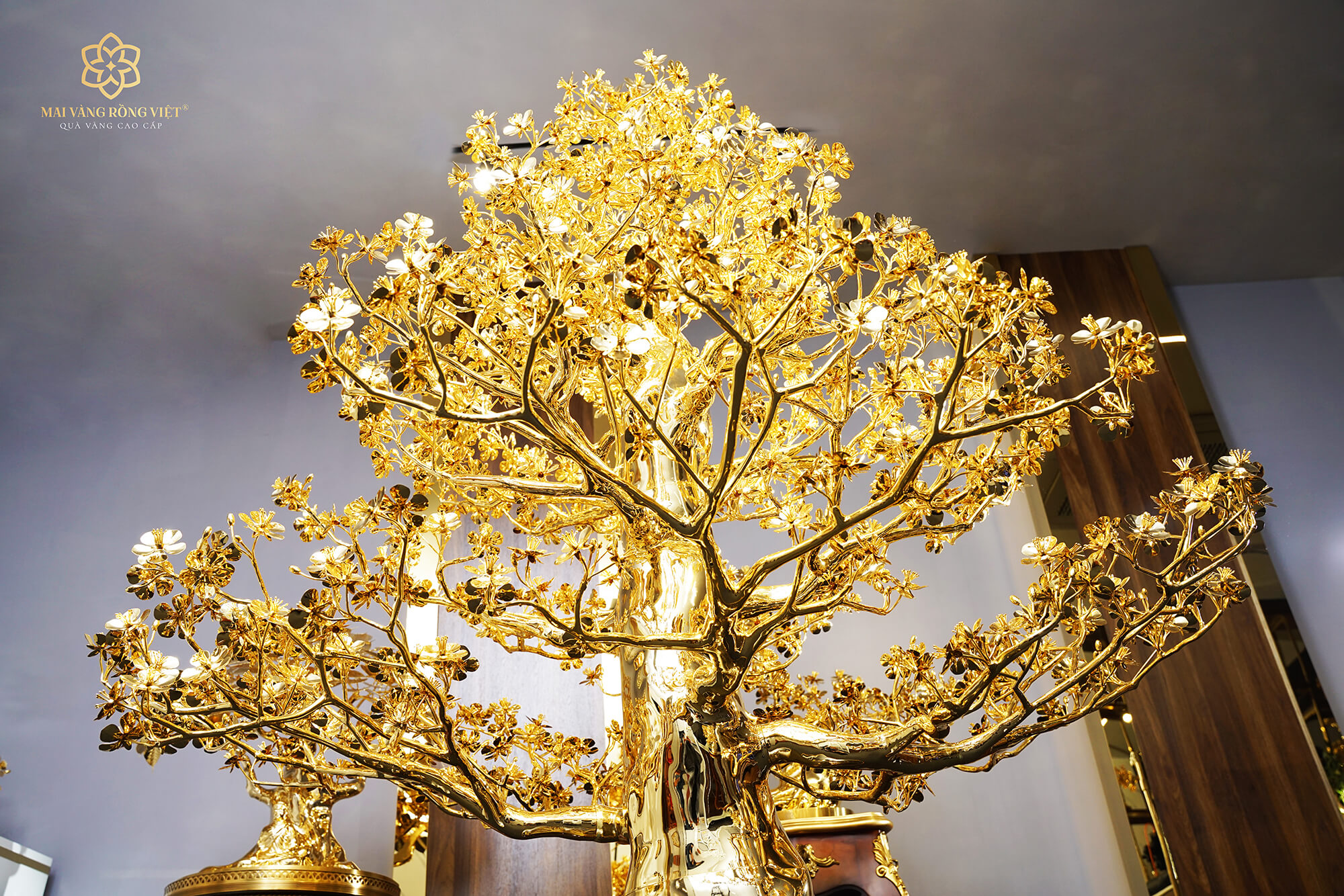 Cây Mai Đại Phúc khoác lên mình vẻ ngoài lấp lánh cao sang, phú quý mà vẫn lưu giữ được cốt cách hiên ngang tựa như một người quân tử. Mỗi bông mai mạ vàng tượng trưng cho một niềm hạnh phúc, một may mắn. Hàng ngàn, hàng vạn bông mai là những thành công và tài lộc bất tận đang đón chờ gia chủ ở phía trước.