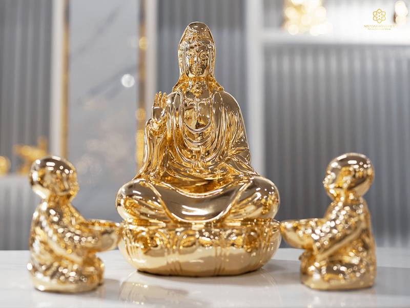 3.10 Đồ phong thủy cho người mệnh Mộc: Tượng Phật Quan Âm mạ vàng
