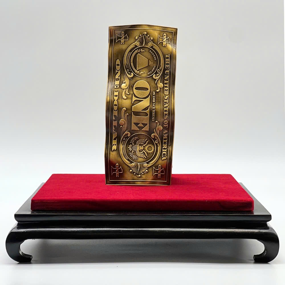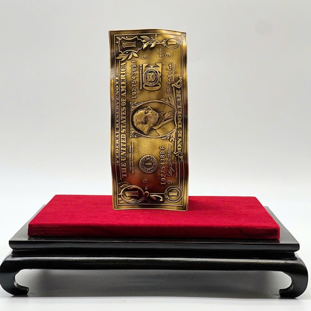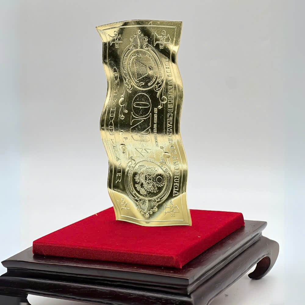 Đồng 1 Dollar mạ màu là món quà tặng phong thủy độc đáo, được chế tác tinh xảo từ chất liệu inox cao cấp, bề mặt mạ màu cổ điển hoặc mạ màu vàng gold sang trọng. Sản phẩm được thiết kế mô phỏng tờ tiền 1 Dollar Mỹ – biểu tượng quen thuộc của sự giàu có, may mắn và thành công trong văn hóa phương Tây, đồng thời được người Việt yêu thích trưng bày để chiêu tài – giữ lộc – thu hút thịnh vượng.