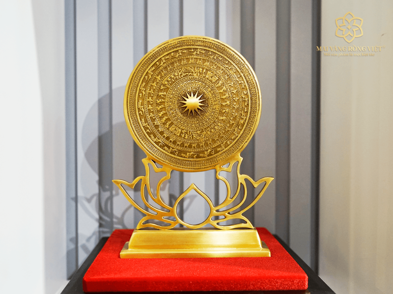 Mặt trống đồng truyền thống trên đế sen mạ vàng – món quà mang đậm bản sắc Việt
