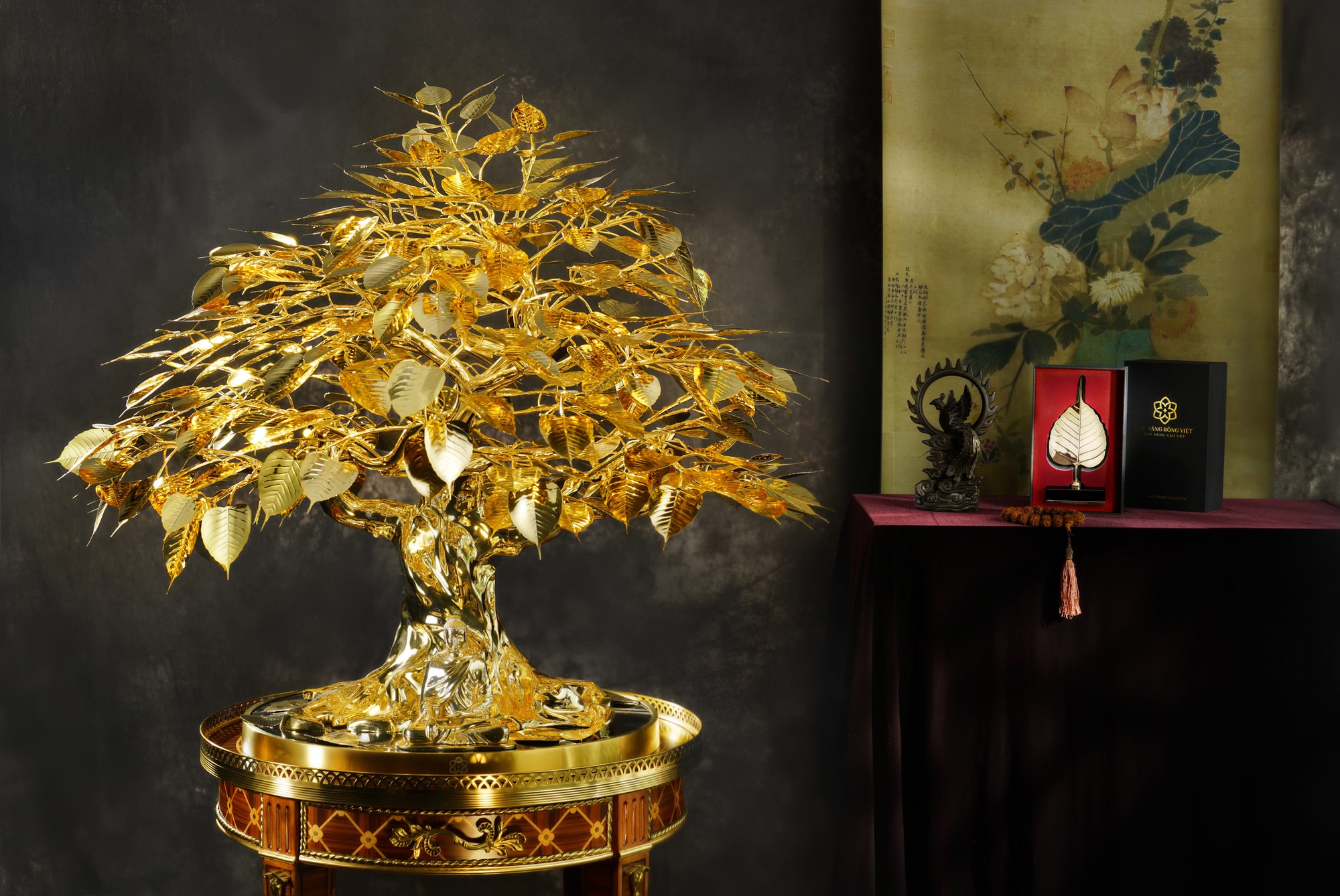 Tượng Phật kết hợp cùng cây Bồ Đề mạ vàng được chế tác thủ công tinh xảo (Mai Vàng Rồng Việt)