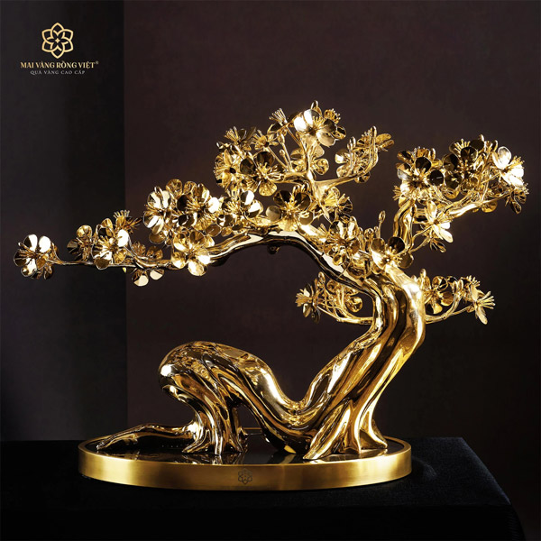 Bộ sưu tập Cây mai mạ vàng 24K là một trong những dòng sản phẩm cao cấp nhất tại Mai Vàng Rồng Việt. Lấy cảm hứng từ những ý nghĩa tốt đẹp của cây mai vàng trong văn hóa người Việt, các nghệ nhân Mai Vàng Rồng Việt đã chế tác ra những “kiệt tác quà vàng” đạt đến độ hoàn mỹ cao nhất, chứa đựng tinh hoa của nghệ thuật phong thủy.
