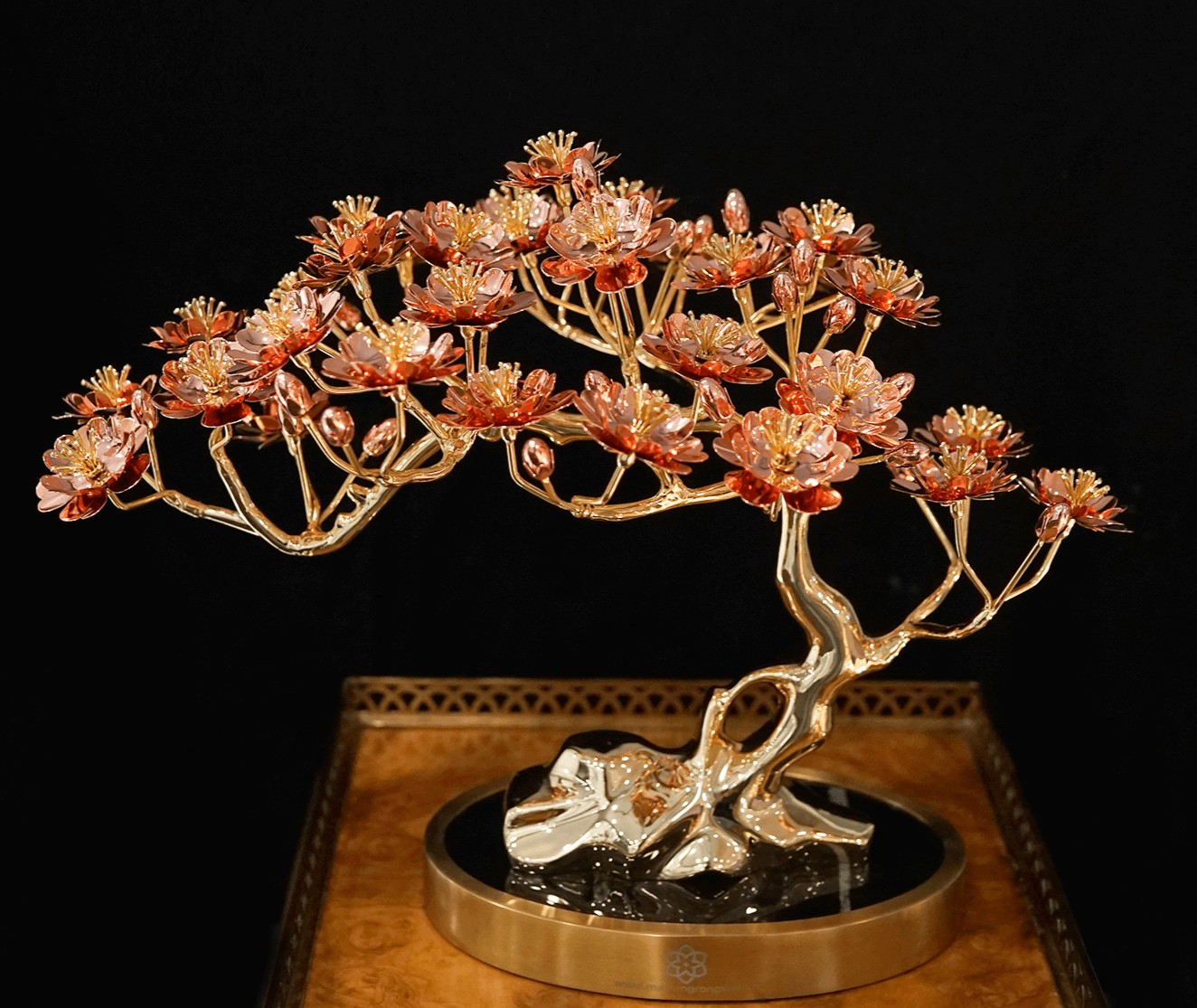 Lấy cảm hứng từ phong cách Takumi Nhật Bản, cây hoa đào mạ vàng thể hiện sự hoàn mỹ trong từng đường nét.