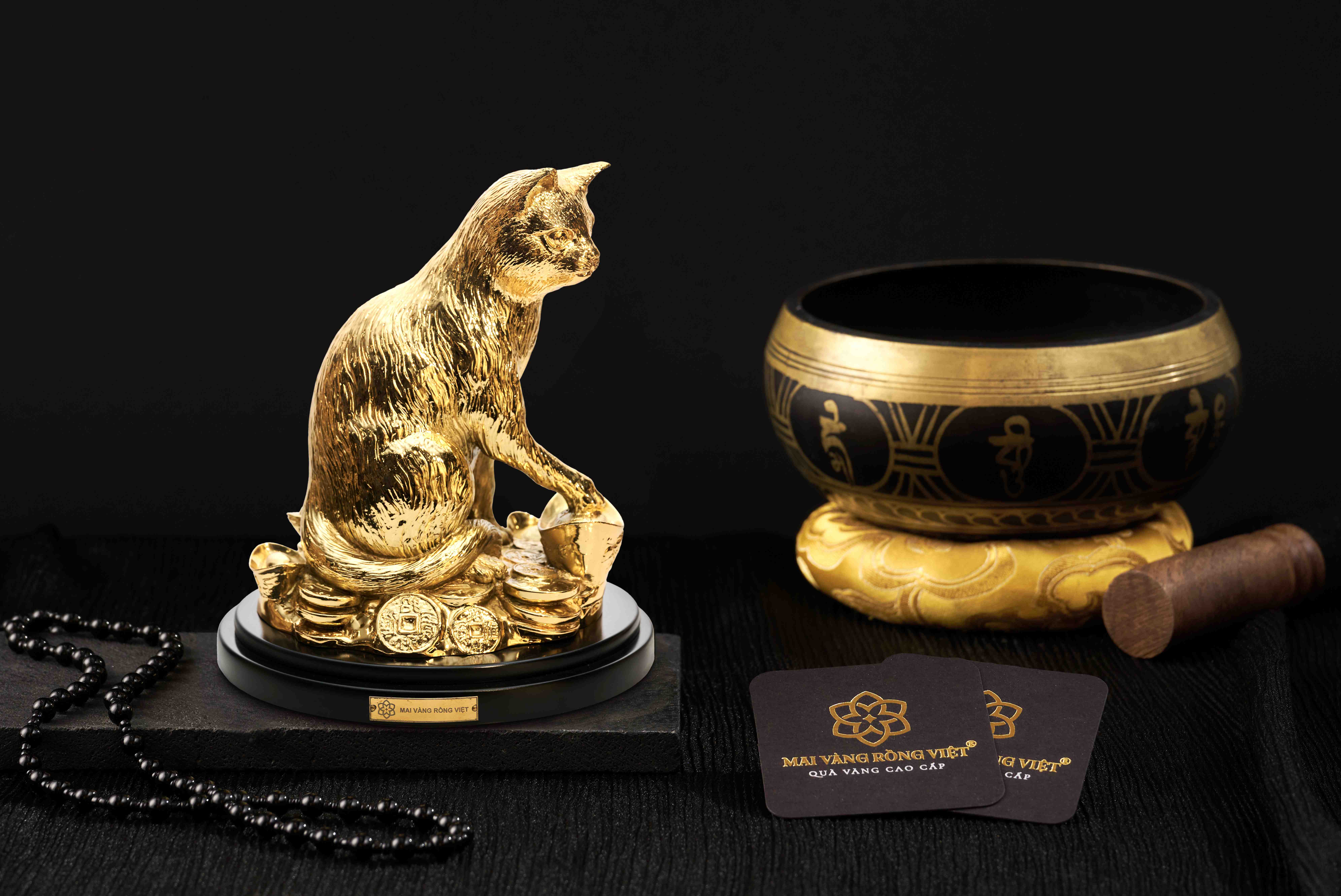 Ngoài các dòng cây và tượng linh vật, Mai Vàng Rồng Việt còn mang đến nhiều sản phẩm độc đáo như hoa hồng mạ vàng 24K, thỏi vàng sung túc mạ vàng 24K, mèo vàng may mắn mạ vàng 24K, tượng Phật Adida mạ vàng 24K, cặp Chú Tiểu mạ vàng 24K, Rồng Thịnh Vượng mạ vàng 24K, Rồng Nhà Lý mạ vàng 24K… Mỗi món đều chứa đựng thông điệp phong thủy riêng, vừa sang trọng, vừa mang ý nghĩa chúc phúc trọn vẹn.