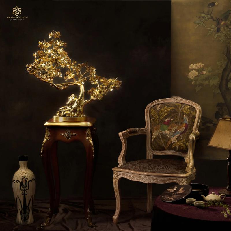 Cây Mai Đại Phúc mạ vàng 24K được coi là tác phẩm đặc sắc và độc đáo nhất. Đây chính là biểu tượng của sự khởi đầu tốt đẹp, thịnh vượng và trường thọ. Món quà này không chỉ mang đến lời chúc an khang, mà còn thể hiện mong muốn hòa hợp, ấm êm trong gia đình, làm bừng sáng mọi không gian sống.