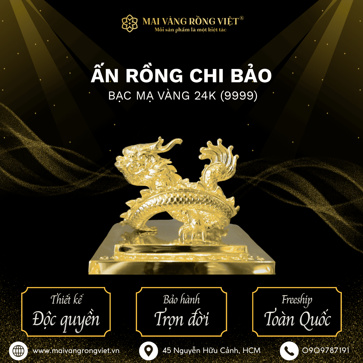 Ấn Rồng Chi Bảo Đúc Bạc 9999 Mạ Vàng 24K