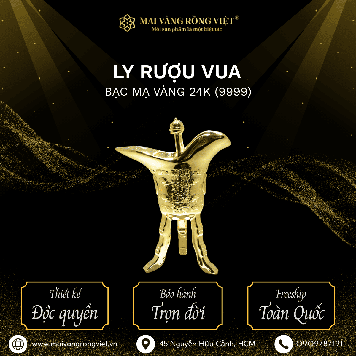 Ly Rượu Vua Đúc Bạc 9999 Mạ Vàng 24K