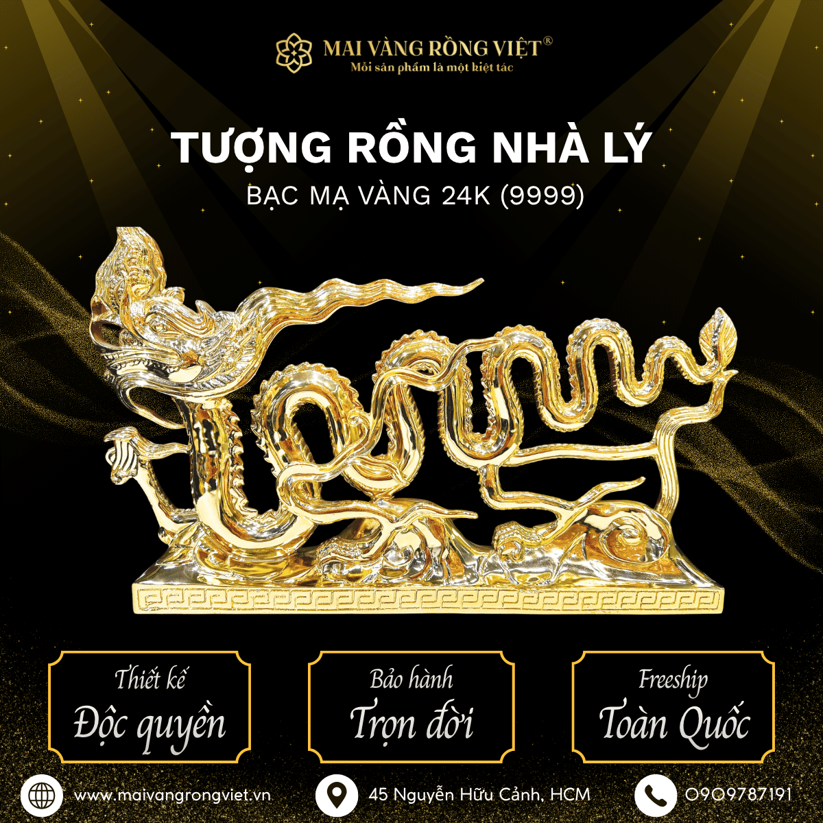 Tượng Rồng Nhà Lý Đúc Bạc 9999 Mạ Vàng 24K