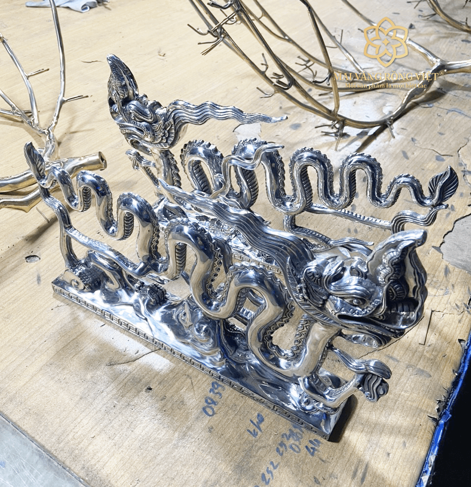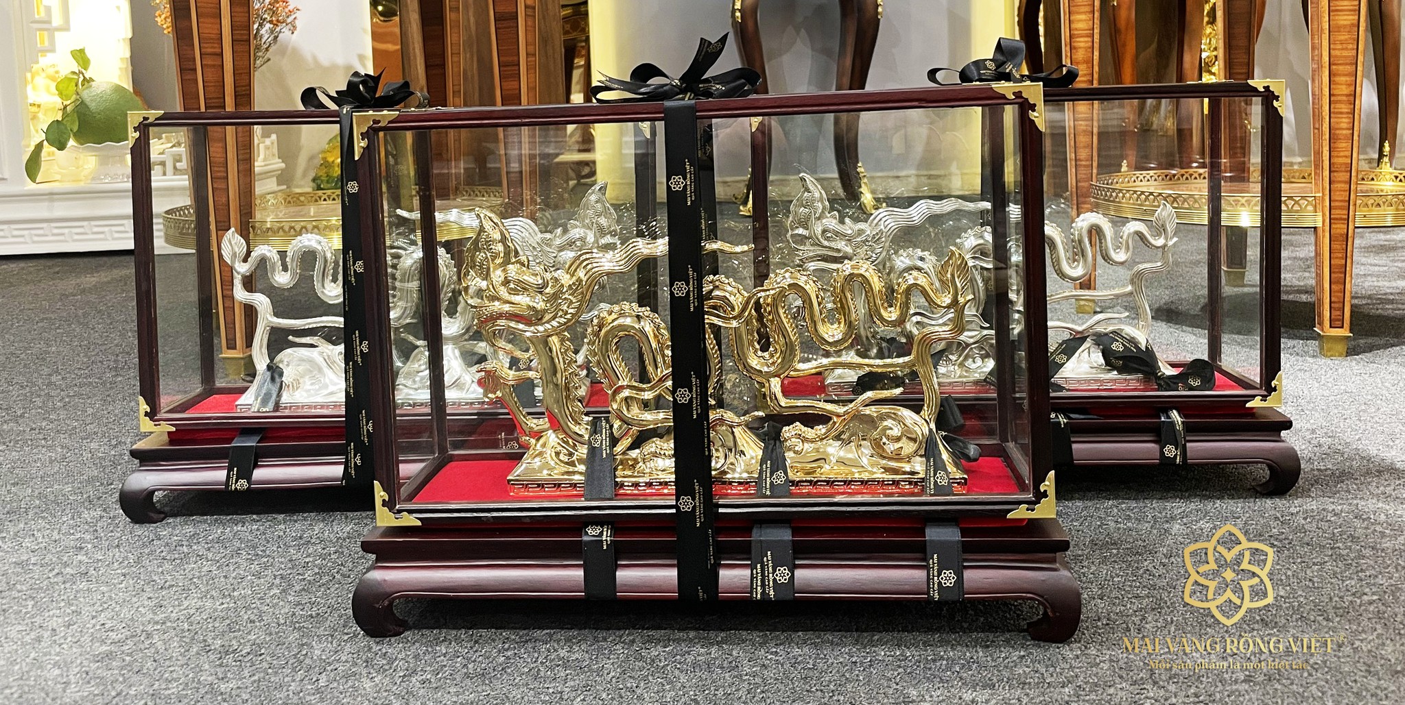Rồng thời Lý được khắc hoạ mang vẻ đẹp dũng mãnh, phong thái oai phong và bản lĩnh. Tác phẩm được mạ vàng 24k lấp lánh, toát lên sự sang trọng, giá trị của linh vật và thể hiện thông điệp chào đón năm Rồng, rước thêm nhiều Tài Lộc.