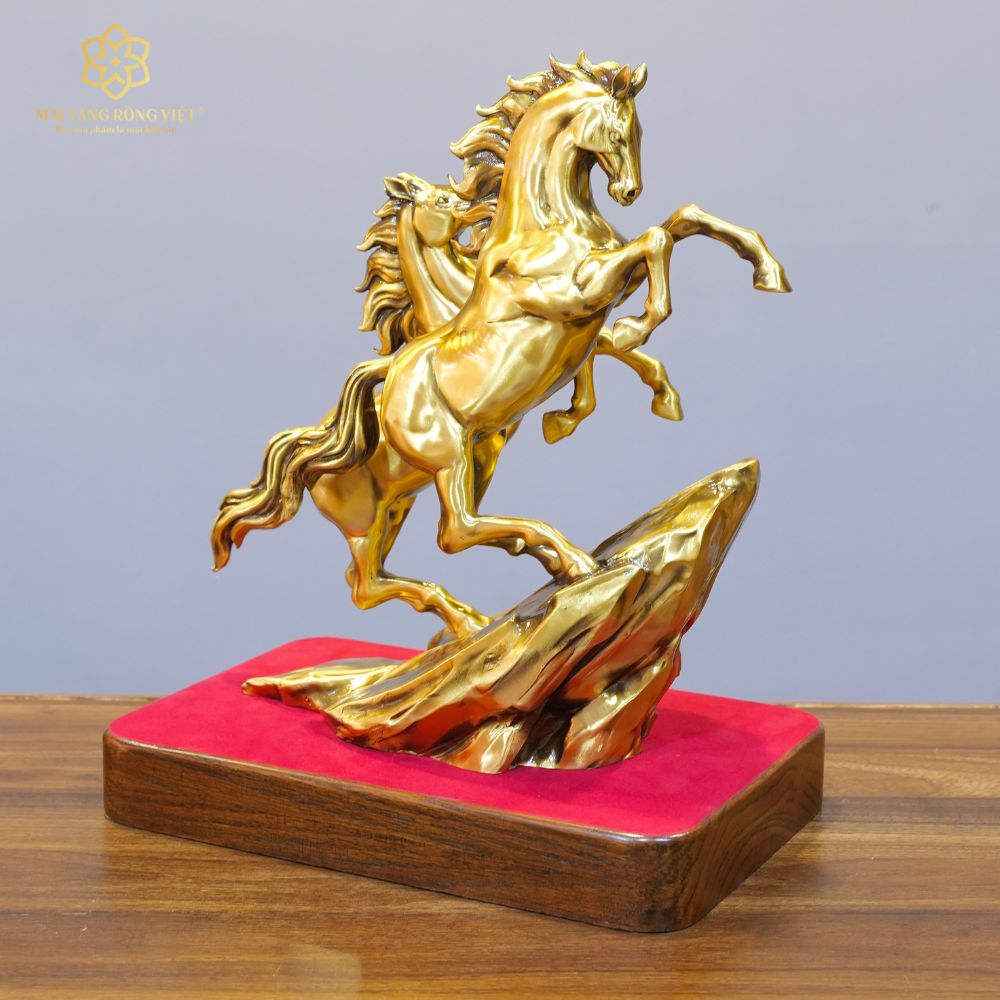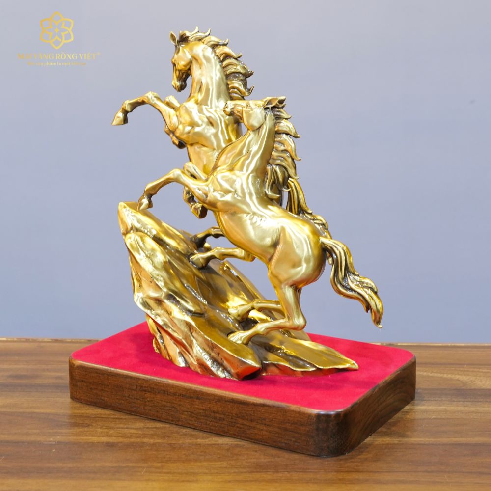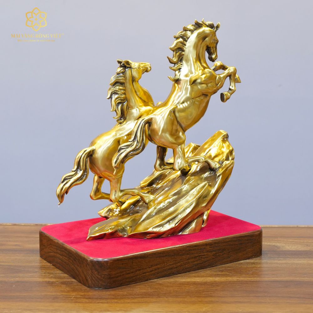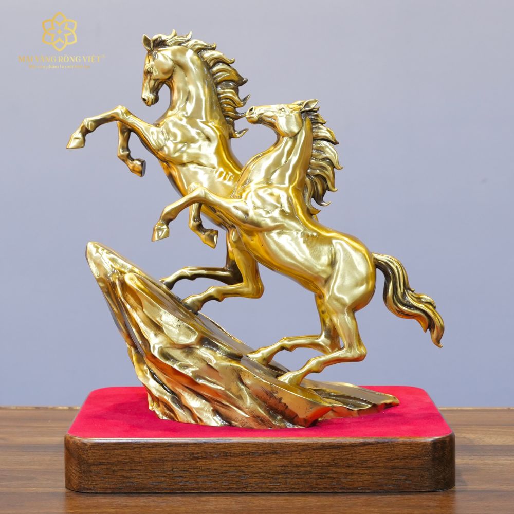 Song Mã Thịnh Vượng Bằng Đồng Mạ Cổ Điển Cao 30cm