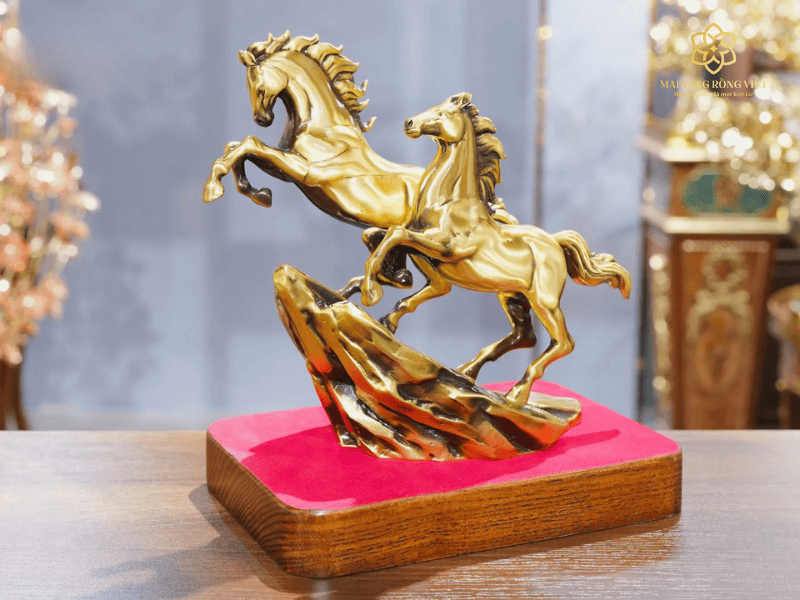 - Tượng/Tranh Mã Đáo Thành Công (Bát Mã): Ngựa thuộc hành Hỏa (giờ Ngọ). Hình ảnh 8 chú ngựa phi nước đại mang nguồn năng lượng Dương cực mạnh (Hỏa khí). Đây là món quà kích thích tinh thần chiến đấu, giúp người mệnh Hỏa "tốc chiến tốc thắng" trong kinh doanh. Việc mạ vàng lên tượng ngựa càng làm tăng thêm giá trị "chiến lợi phẩm" mà người mệnh Hỏa nắm giữ.