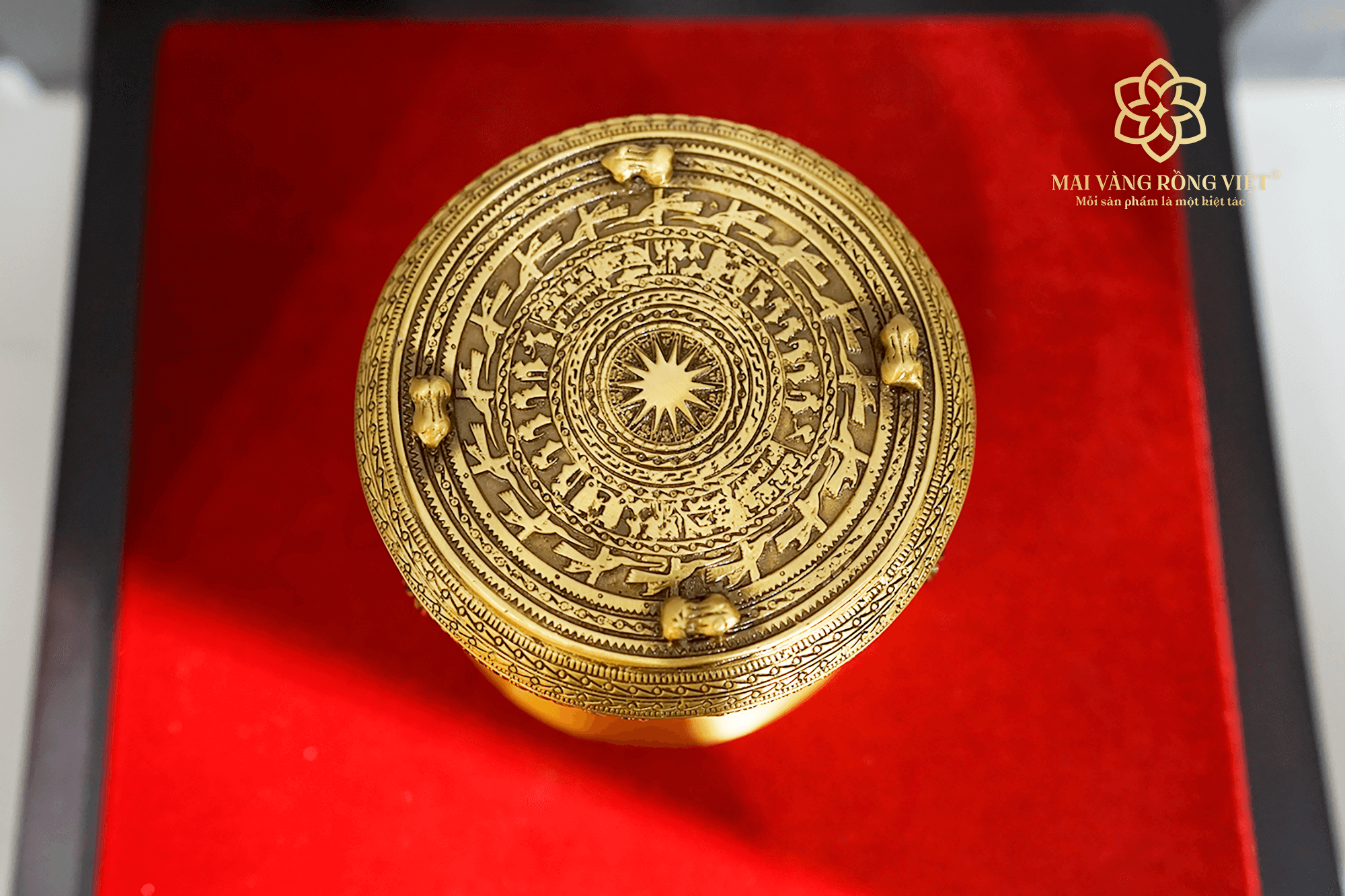 Trống đồng của thương hiệu Mai Vàng Rồng Việt được chế tác thủ công tỉ mỉ, các hoạ tiết được chạm khắc một cách khéo léo bởi bàn tay của những người nghệ nhân lành nghề. Tác phẩm chính là sự kết hợp tinh tế giữa văn hóa truyền thống và sự sang trọng hiện đại, là biểu tượng của quyền lực, sự thịnh vượng và phát triển của dân tộc. Mang ý nghĩa thiêng liêng và cao quý, tác phẩm là lựa chọn hoàn hảo để làm quà tặng cao cấp cho những dịp đặc biệt như tân gia, sinh nhật, kỷ niệm, lễ hội hoặc các sự kiện quan trọng.
