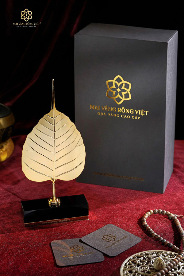 Lá bồ đề là vật phẩm phong thủy hút tài lộc rất được ưa chuộng trong thời gian gần đây. Lá bồ đề tượng trưng cho trí tuệ sáng suốt, sự tỉnh thức, giác ngộ do nó gắn liền với quá trình tu tập và đắc đạo của Đức Phật. Lá bồ đề mạ vàng được chế tác vô cùng tinh xảo từ hợp kim đồng, mạ vàng 24K và phủ sơn nano bảo vệ. Đây vừa là món quà tặng ý nghĩa vừa là vật trang trí trong nhà, trên bàn làm việc, xe ô tô…