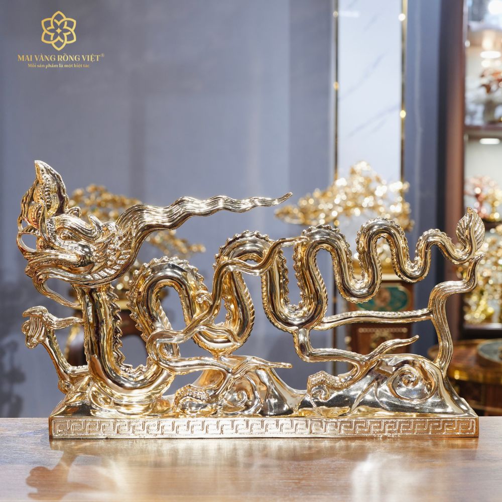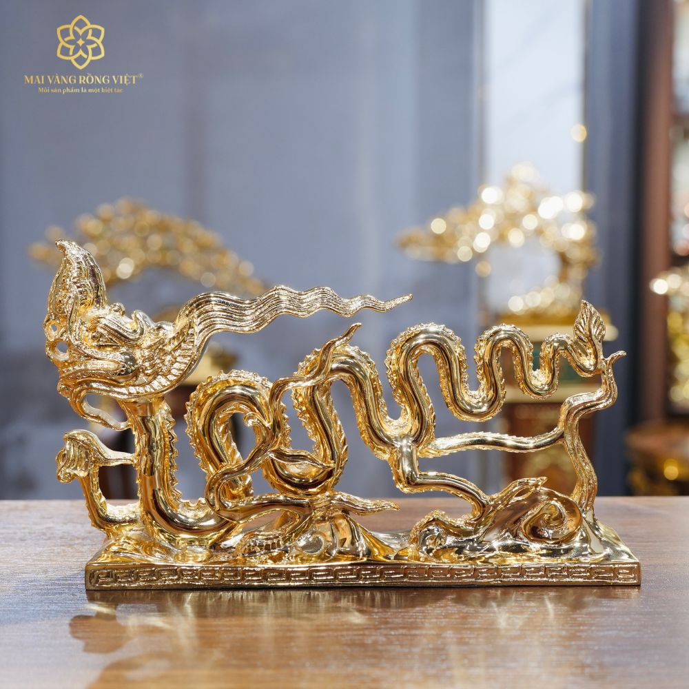 Tượng Rồng Nhà Lý là biểu tượng mang đậm tinh hoa nghệ thuật Đại Việt, kết hợp cùng công nghệ mạ vàng 24K hiện đại tạo nên một tác phẩm sang trọng, giá trị và giàu ý nghĩa phong thủy.