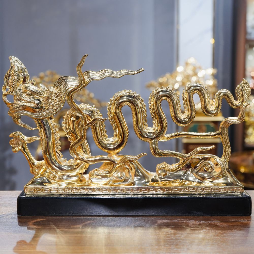 Tượng rồng mạ vàng là điểm nhấn đẳng cấp cho phòng khách, phòng làm việc, quầy lễ tân hay phòng trưng bày. Ánh vàng sang trọng giúp không gian trở nên ấm cúng và nổi bật.